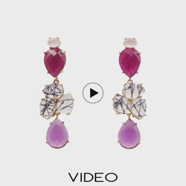 Piedras naturales: Turmalina Rosa, Cuarzo Rutilado Negro, Rubíi Opaco, Doblete de Cuarzo Blanco